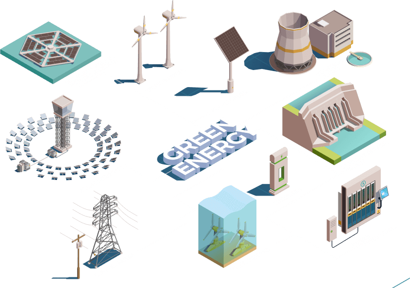We focus on several key markets, including Renewable Energy (Hydro, Solar, Bio-Energy, Hydrogen, Wind), Grid Storage Technologies (BESS, VRFB), Energy Transition and Carbon Offsets, Electrical Power Grid, and the Fuel Supply Chain.